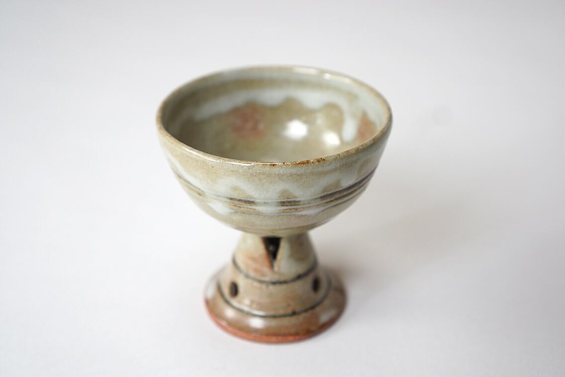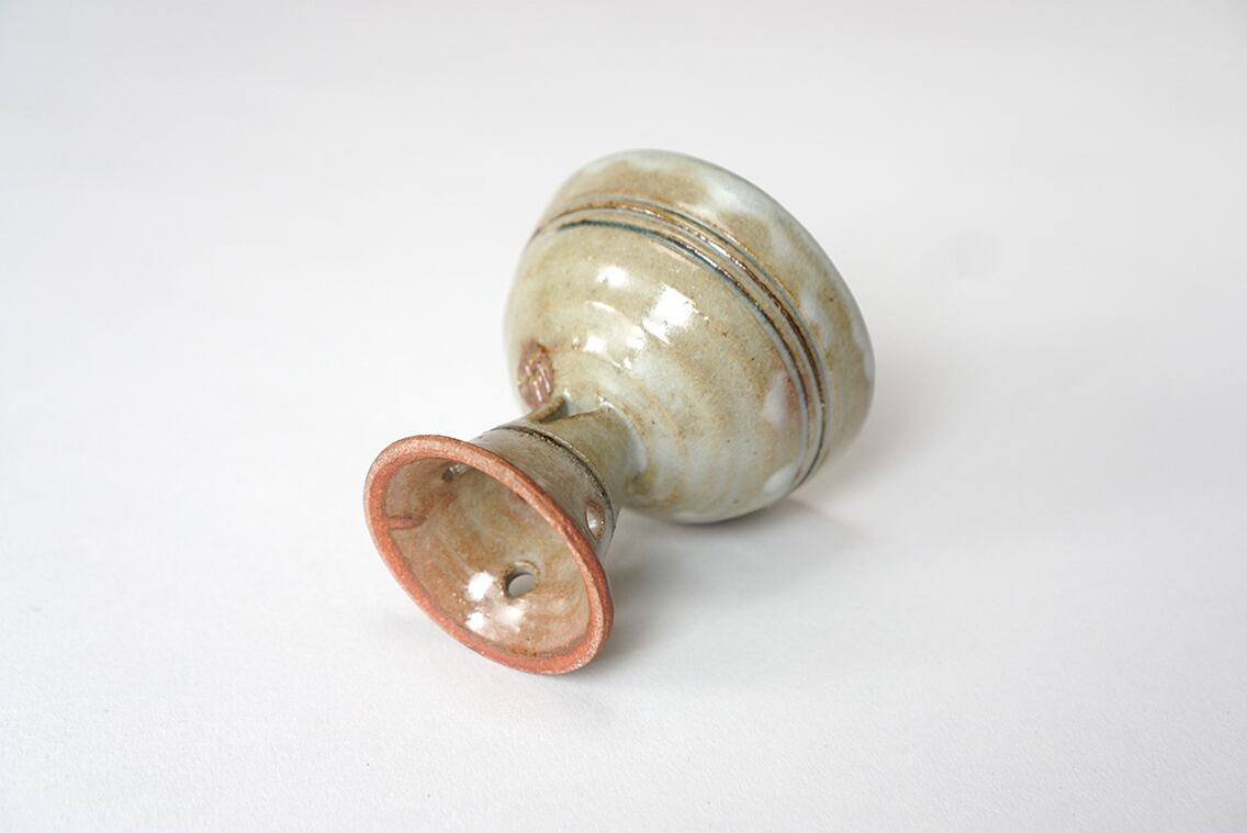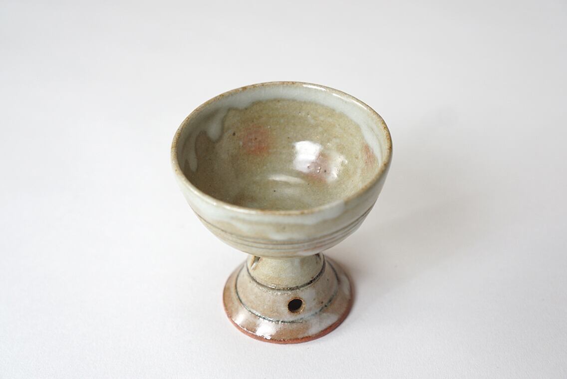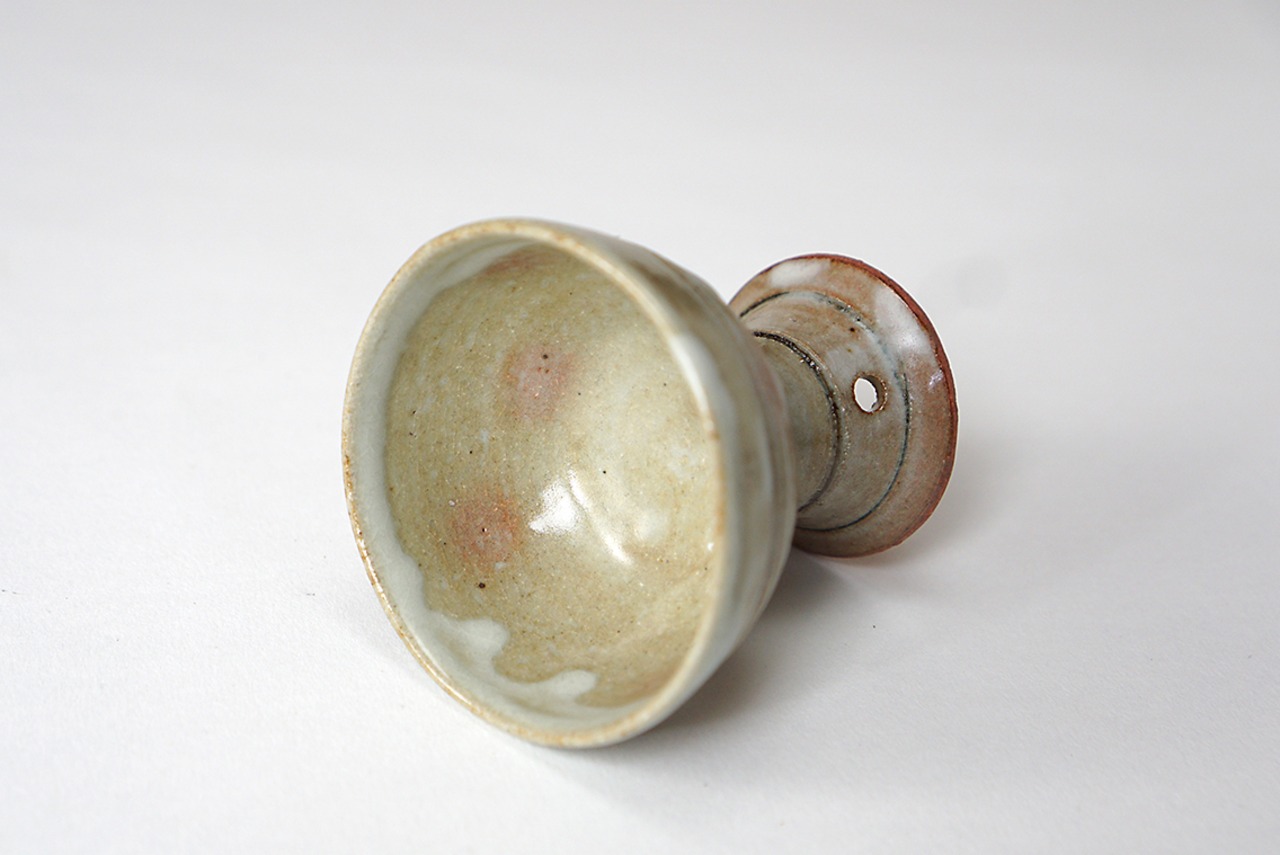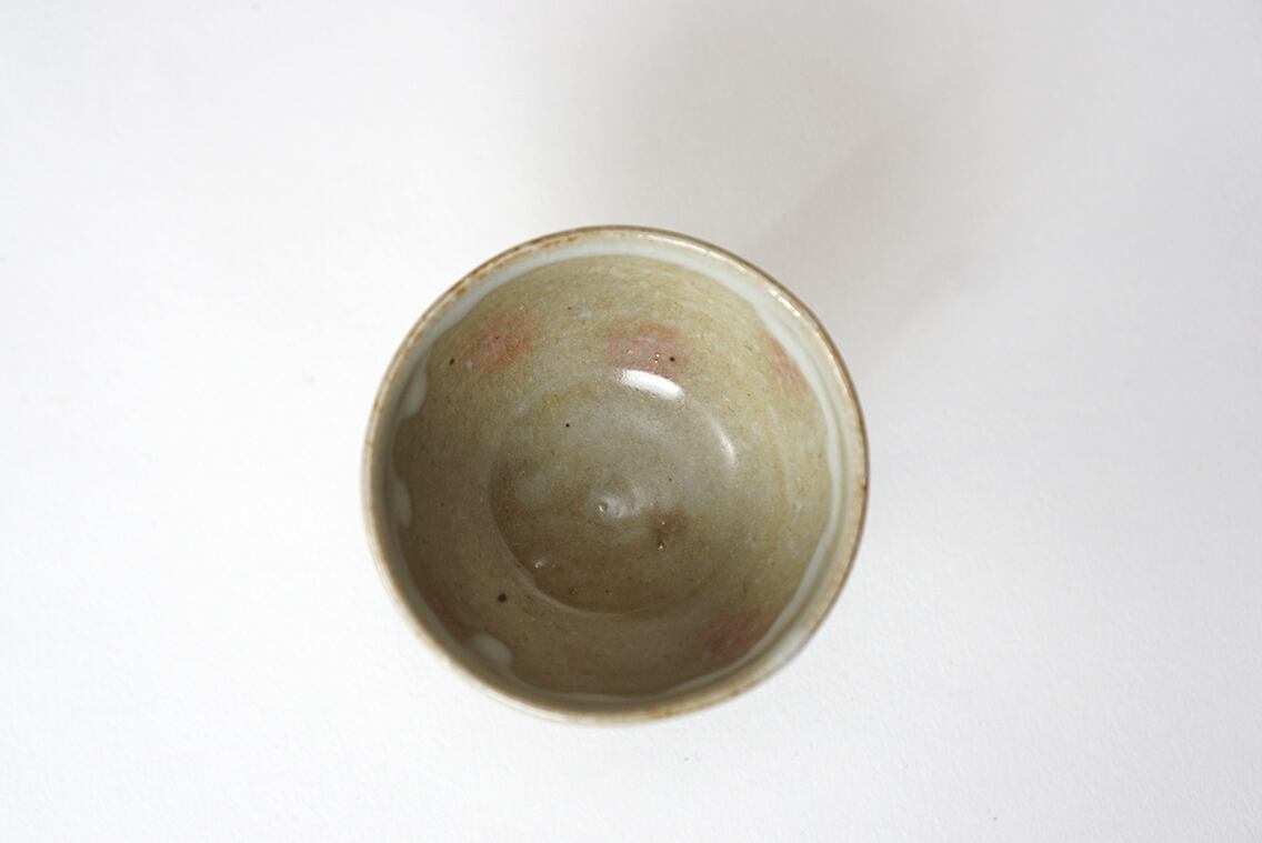 釉薬の溜まりがやや乳濁していてうっすらと御本の出ている作品。ぐい呑として、また珍味入れとしてもお使い頂けます。